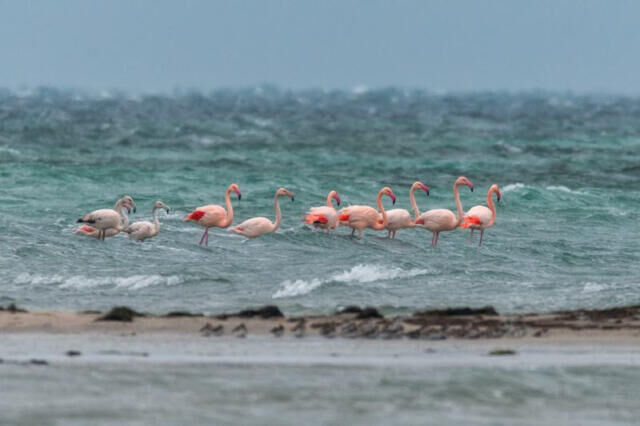 На крымское побережье прилетела стая розовых фламинго. Необыкновенной красоты птицы сразу же стали объектом притяжения для фотографов. В час...