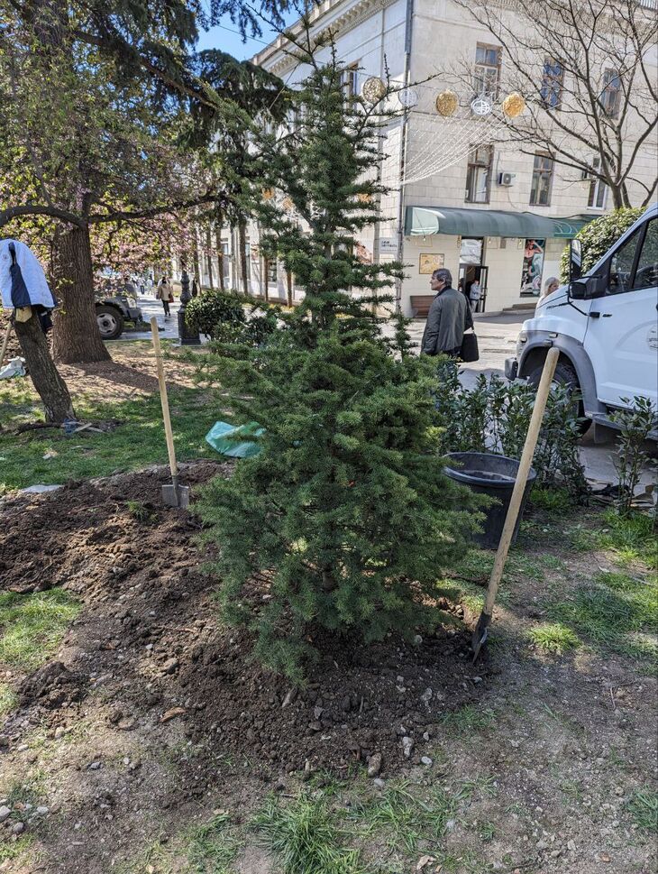 Два молодых кедра высажены в центре Ялта за памятником Ленину. В этом месте после разгула стихии в ноябре прошлого года пришлось удалить опа...