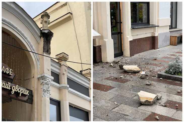В Ялте на набережной им. В.И. Ленина, 17 обвалилась часть фасада исторического здания. Видео опубликовали очевидцы в соцсетях. Фото: телегра...