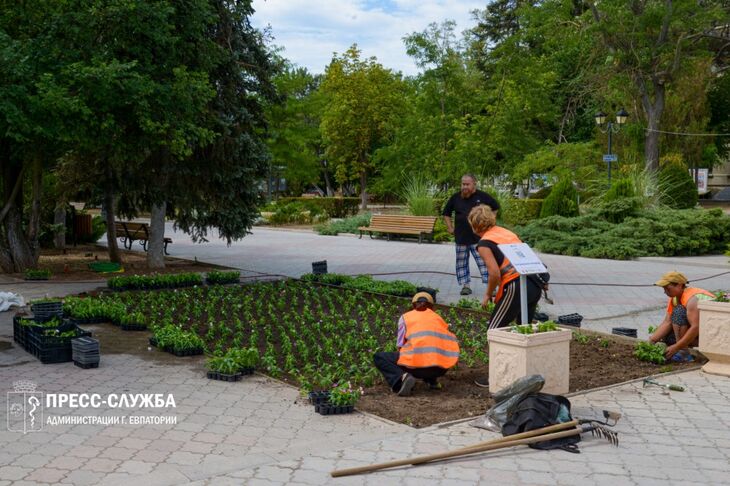 В Евпатории на Театральной площади начали обновлять клумбы и вазоны. Здесь высаживают бегонию вечноцветущую, а также катарантус ампельный и ...