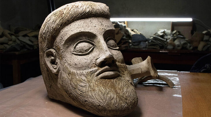 Уникальная терракота была найдена в 2017 году у мыса Ак-Бурун в Керченском проливе при строительстве опор моста. Объект изображает мужскую голову из обожжённой глины в натуральную величину, что является редкостью: античные терракоты чаще всего не превышают 40 см в высоту. Предположительно это античный бог или герой. Теперь над его изучением трудится большой коллектив археологов, химиков и физиков.