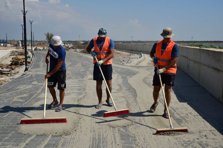 — Мы к этому объекту приступили в ноябре прошлого года. По контракту у нас срок окончания ноябрь 2021 года, но имеем планы завершить в этом году. Объект состоит из пяти участков, разделённых тематически. На пятом участке выполнены практически все работы, кроме озеленения, которое из-за погодных условий Крыма мы отложили на осень. Сделано освещение, фонтан и пляж. В такой же стадии находится с противоположной стороны набережной первый участок. Сейчас активно ведём работы по дорожкам на втором и четвёртом участках. Третий участок в греческом стиле, сейчас мы там делаем котлованы театра и стены амфитеатра, — рассказала Колесникова.