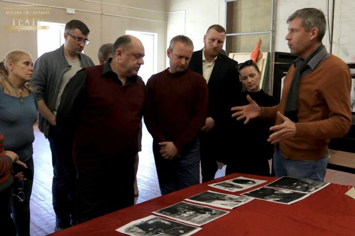 Художник, отвечая на задаваемые вопросы, одновременно советовался с коллегами по поводу технических тонкостей. Предусмотрены два варианта сценографии: на стационаре и выездных спектаклях.