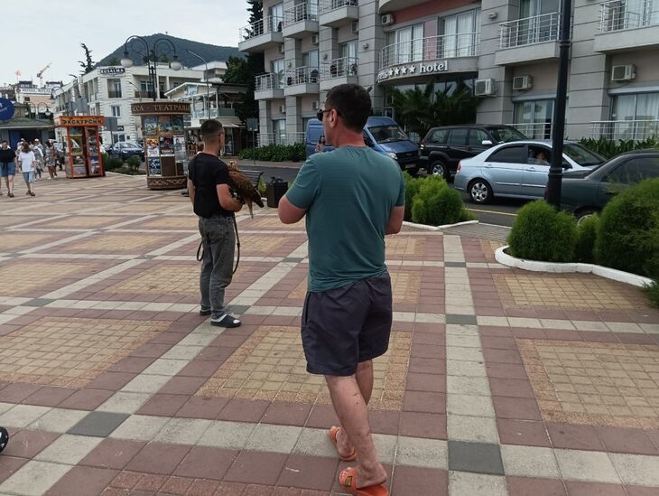 «В Рабочем уголке напротив отеля «Морской» трое мужчин, предположительно кавказской национальности, предлагали сфотографироваться с орлами. На мою фразу, что это незаконно, начали вести себя агрессивно, кричать и толкаться. Вопрос к администрации города, проводятся муниципальным контролем рейды на предмет выявления подобных деятелей?», — написал очевидец в соцсетях.