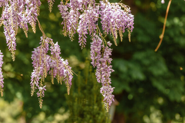Длина соцветий глицинии китайской составляет от 10 см. На территории ботсада две таких лианы. Также произрастают глициния обильноцветущая и глициния короткокистистая в трёх сортах: «Iko Yama Fuji», «Shiro Kapitan Fyji», «Showa Beni». Их соцветия бывают сиреневого, белого и розового цветов.