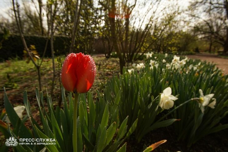 «Тюльпаны – жемчужина нашей коллекции, и скоро мы с вами станем свидетелями цветения более 40 их видов. Из-за особенностей погоды и низких температур на прошлой неделе ранние сорта немного задержались, но если тепло продержится еще хотя бы два дня, то мы увидим настоящее буйство красок», – рассказала старший научный сотрудник Ботанического сада КФУ Лариса Решетникова.