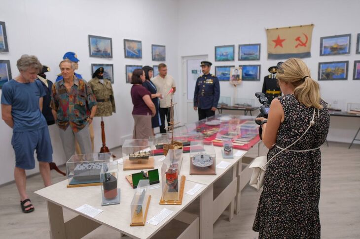 В Евпатории в Доме молодёжи открылась выставка, посвящённая Дню Военно-морского флота. Как сообщил директор АНО «Дом Молодёжи» Дмитрий Шалацкий, выставка стала возможной благодаря усилиям художников, фотографов и моделистов.