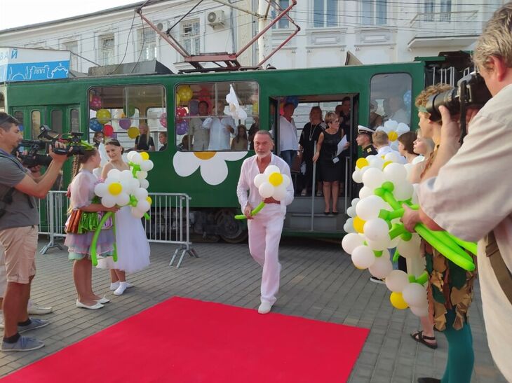 Приветствуя гостей и участников фестиваля, его президент, народный артист РФ Дмитрий Харатьян указал на символизм юбилейного мероприятия. На главную площадь города-курорта он вместе с другими звёздным участниками и гостями кинопраздника прибыл на евпаторийском трамвае.