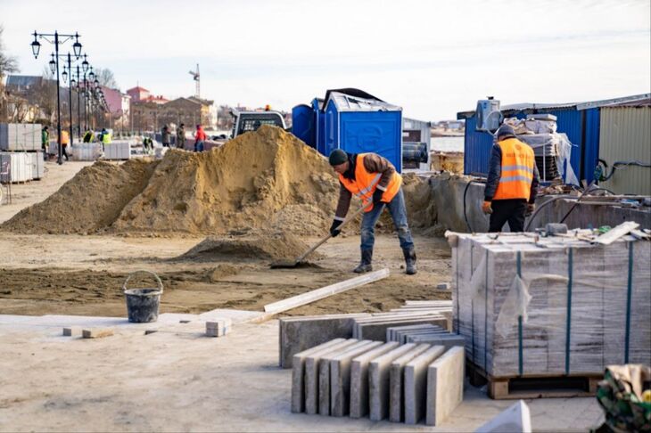 По её словам, сейчас специалисты готовят набережную под укладку гранита, планируют грунт под газон, производят монтаж опалубки, с армированием, бетонированием ступеней, устанавливают болларды и гипсовые элементы ротонд.