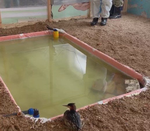 «Птицы сами пошли в воду. Сейчас в бассейне с теплицей живут 45 чомг и несколько гагар», - рассказывают волонтеры Керчи.