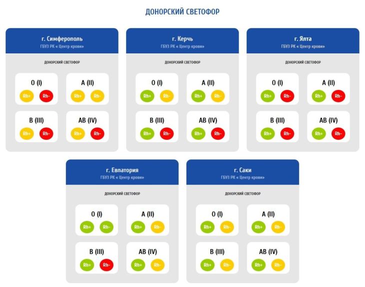 «Очень ждем доноров с группой крови и резус-фактором, которые отмечены в светофоре красным и желтым! Обязательно возьмите с собой паспорт и СНИЛС. Надеемся на вашу помощь в пополнении запасов», – рассказали корреспонденту Крымского информационного агентства в «Центре крови».