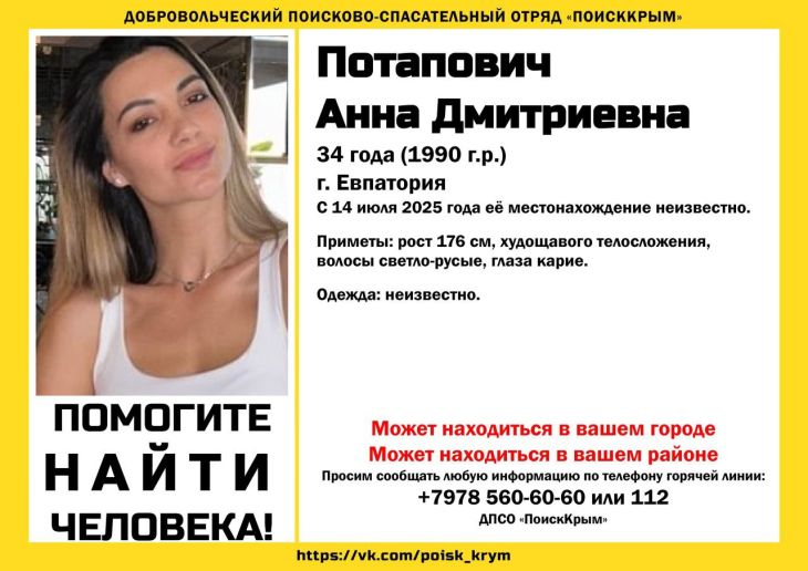 В Крыму несколько дней ищут пропавшую Анну Потапович