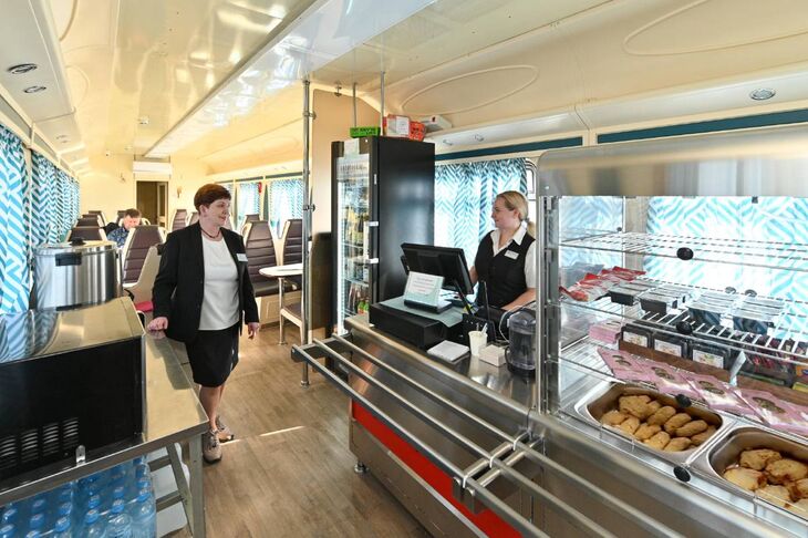 В вагоне-столовой по сравнению с вагоном-рестораном изменена технология обслуживания пассажиров. Выбрать еду можно непосредственно с витрины, взять и быстро перекусить. В дневном меню нет вина и крепкого алкоголя, так что у посетителей нет поводов задерживаться за столиками. Если все места заняты, еду можно упаковать в контейнер.