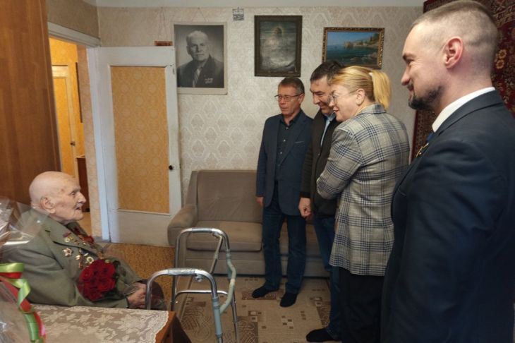 Гости вручили фронтовику цветы и подарки, выразив слова благодарности за его подвиг и неоценимый вклад в Великую Победу.