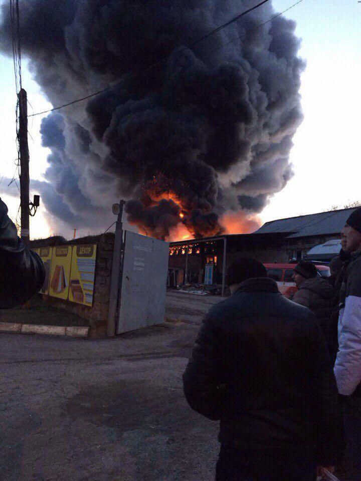 Предположительно, горит помещение по производству окон.