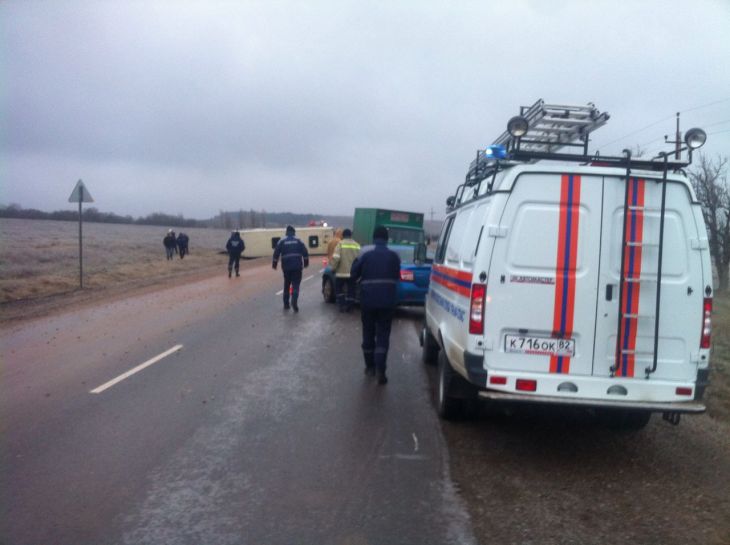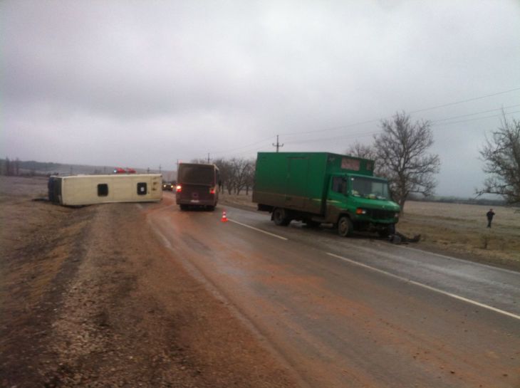 В результате ДТП на 76 км Феодосийской трассы перевернулись автобус и автомобиль (ФОТО)