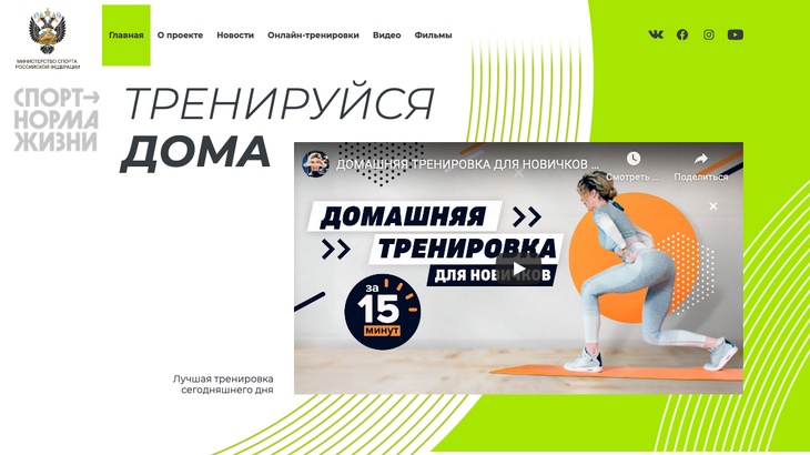 Наполнить ресурс интересным содержимым помогли энтузиасты домашних онлайн-тренировок: спортсмены, авторы профильных каналов в соцсетях, спортивные организации.