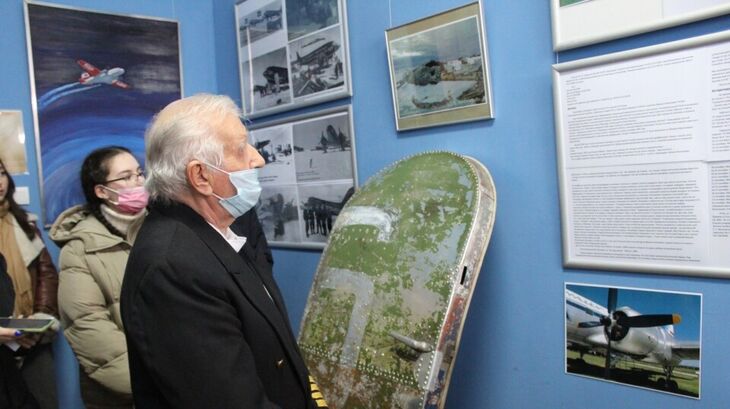 На выставке в музее Тавриды представлены оригинальные фотографии путешествия указателя из Крыма в Антарктиду, а также многие другие интересные предметы, в числе которых дверь легендарного самолёта ЛИ-2, отработавшего в 50-е годы прошлого столетия во льдах Антарктики с экипажем Михаила Сомова.
