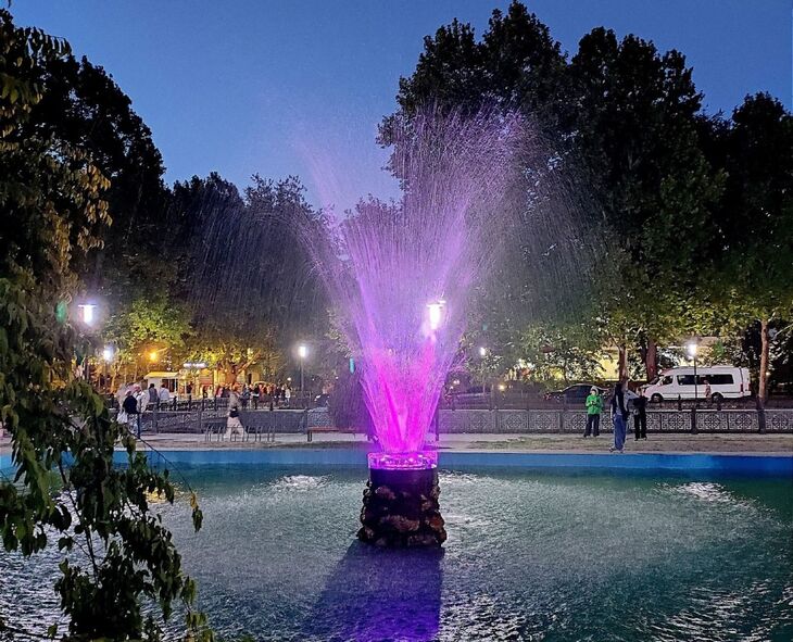 Ночной Екатерининский сквер (Городской сад) в Симферополе окрасился разноцветной радугой. На набережной Салгира отремонтировали искусственные пруды и появился крутящийся фонтан с разноцветной подсветкой.