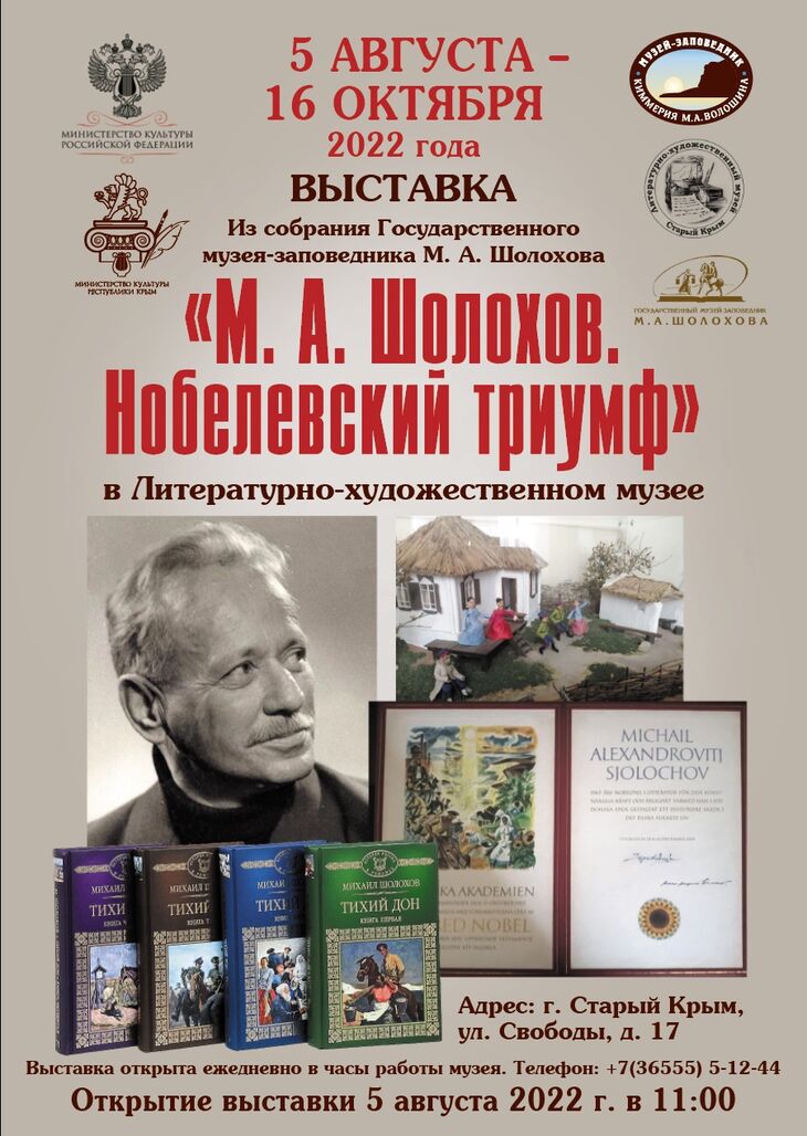 В Литературно-художественном музее Старого Крыма сегодня открылась межрегиональная выставка «М. А. Шолохов. Нобелевский триумф» из собрания Государственного музея-заповедника М. А. Шолохова.