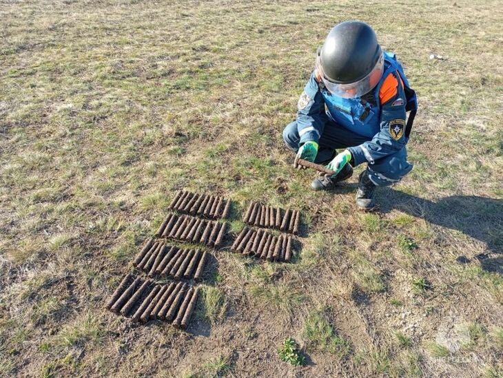 «Было найдено 84 взрывоопасных предмета времен Великой Отечественной войны (82 артиллерийских снаряда и 2 минометные мины). Взрывоопасные предметы извлекли из земли, перевезли на специальный полигон и обезвредили», — уточнили в ведомстве.