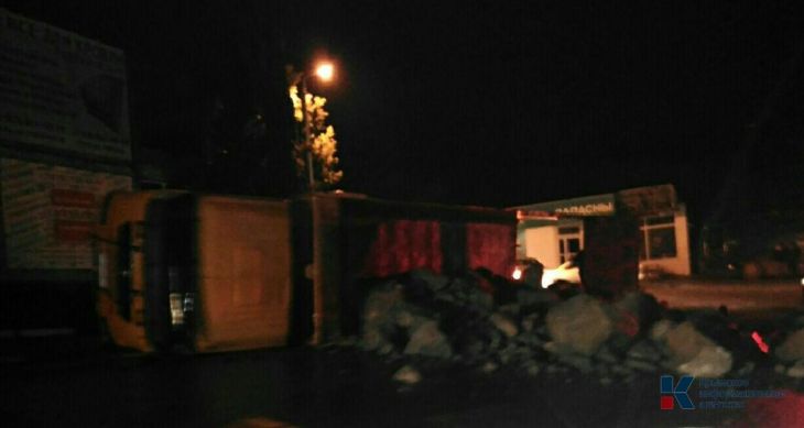 В Ялте опрокинулся грузовик с камнем (ФОТО)