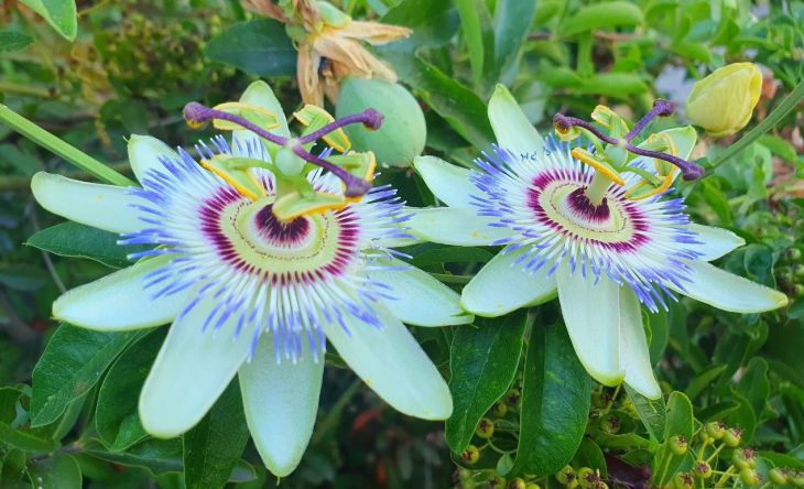 В теплых ялтинских условиях пассифлора голубая (Passiflora caerulea) раскрывает бутоны так быстро: в течение 15–30 минут цветок появляется открытым, словно взорвался, а лепестки распрямляются прямо на глазах у наблюдателя.