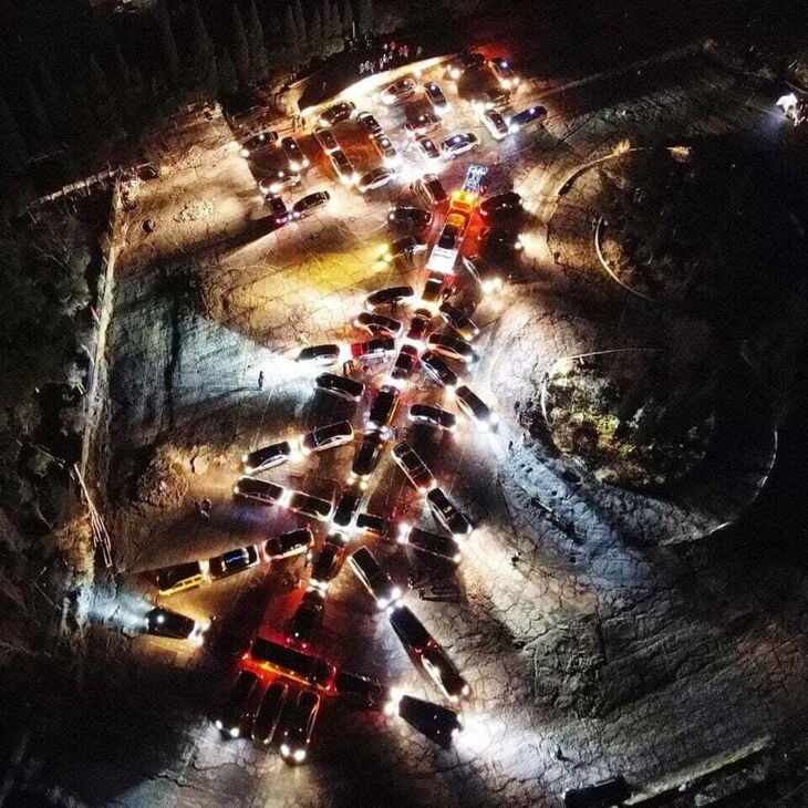 В Ялте в минувшее воскресенье водители устроили новогодний флэшмоб «Автоёлка Ялта 2022». Фото опубликовали участники в соцсетях.