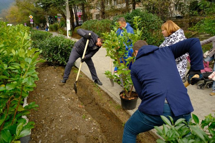 «Озеленять Ялту продолжили в рамках акции «Посади дерево жизни» (проект «Чистый Крым»), которая проходит по инициативе Председателя Государственного Совета Республики Крым Владимира Андреевича Константинова. До конца ноября добавим еще 3 тысяч кустарников и деревьев – аукубы, можжевельники, розы, кипарисы, гибискусы, туи, розмарин, юкка, альбиции и многие другие. В сквере Калинина начинаем «оплетать» глицинией две новые беседки. Также работы охватят Стахановский сквер, Симеизский парк, сквер Космонавтов в Форосе, сквер Маяковского в Кореизе, парк Мурад-Авур в Гаспре, Алупку в районе «Южнобережного», набережные Гурзуфа и Ялты», — сообщила глава администрации Ялты Янина Павленко.