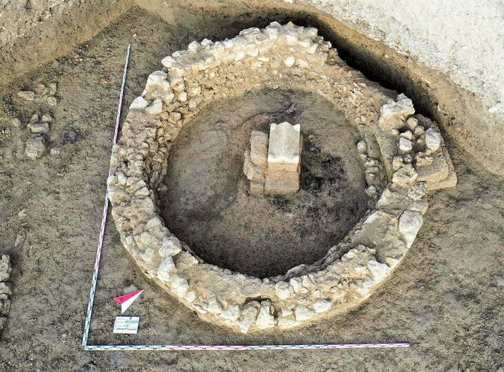 Еще один уникальный для Северного Причерноморья погребальный комплекс – толос. Это сооружение круглой формы с куполообразной кровлей, внутри которого находился каменный саркофаг со свинцовой погребальной урной. Ученые приходят к выводу, что территория некрополя, скорее всего, была поделена на участки. Те, что принадлежали зажиточным горожанам, могли быть богато оформлены.