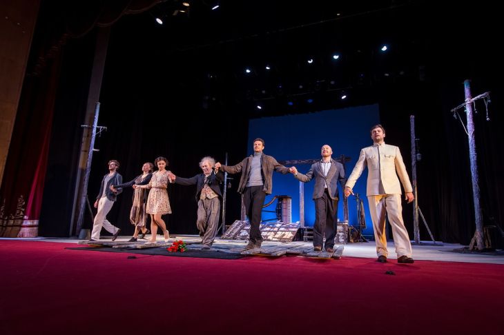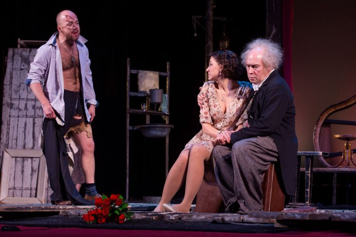 — Этот фильм, конечно, видела вся страна и видела не раз. И пьесу Вампилова в своё время ставили по всему СССР? И когда мы работали над спектаклем, все меня стали сравнивать с Леоновым — «не боишься, что будет хуже?». А я отвечаю – «не боюсь! У меня будет лучше, потому что будет по-другому». Действительно, у нас совсем другое решение. Леонов сделал пьющего человека, немножко рыхлого, неряшливого, потерянного. А мой — одержимый, мой Энштейн, композитор Бетховен. Даже в самой пьесе Вампилов заложил две черты его биографии: жена с Сарафановым оставила двоих детей. Как выдумаете, оставила ли бы она их с пьяницей? И второй момент – Сарафанов всю жизнь писал кантату, признание любви к человечеству. Такого мечтателя мы и сочинили. И мы с фильмом не соревновались.
