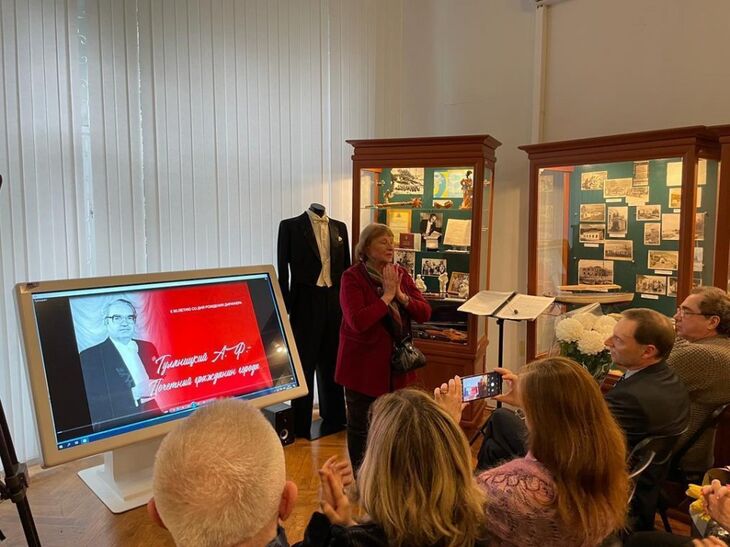 Здесь можно увидеть фотографии, документы, личные вещи – концертный фрак, любимую партитуру симфонии Шостаковича, дирижёрскую палочку, скрипку и смычок принадлежавшую Гуляницкому.