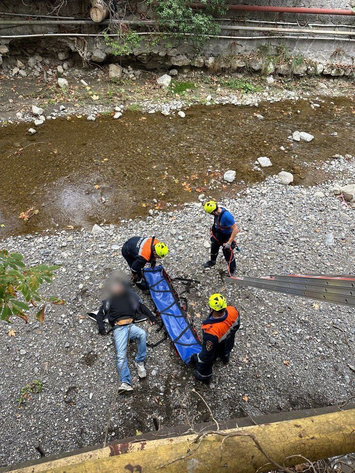 Инцидент произошел вчера. Мужчина упал с подпорной стены высотой около 8 метров в русло реки. В результате он получил травмы и не мог самостоятельно передвигаться.