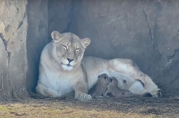 Эвакуированная из Мариуполя львица дала потомство в Крыму