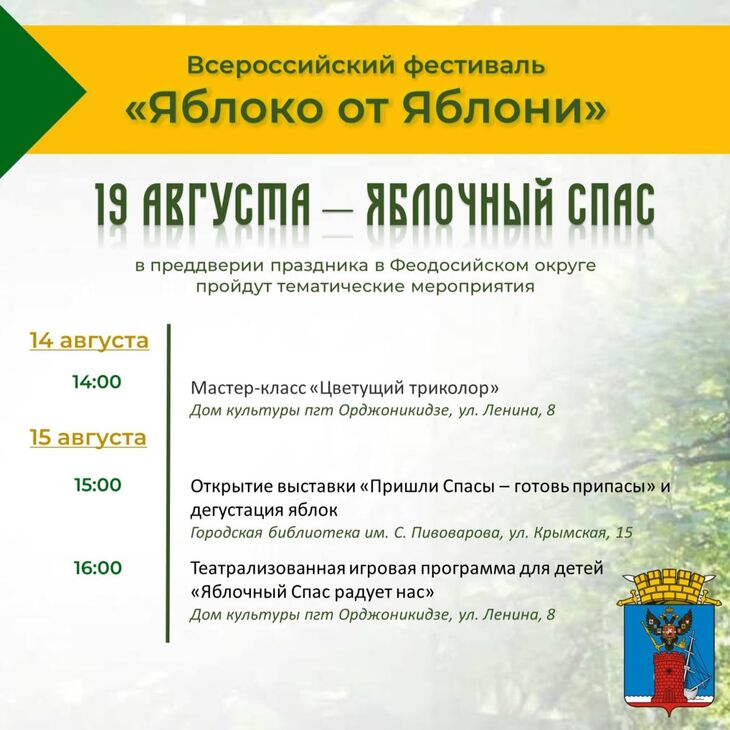 В преддверии Яблочного Спаса, который православные христиане будут праздновать 19 августа, в Феодосийском округе пройдут тематические мероприятия в рамках проекта «Связь поколений».