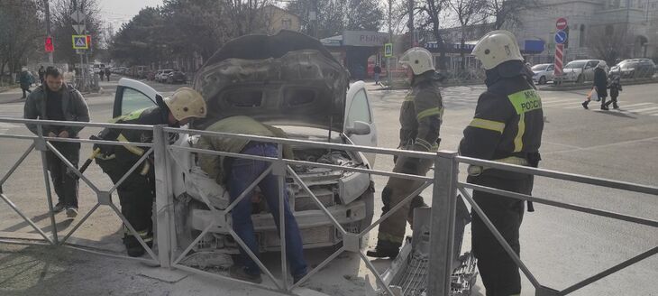 На перекрёстке улиц Залесская и 60 лет Октября в Симферополе сегодня загорелся автомобиль. За рулём была женщина, а в салоне находился ребёнок.
